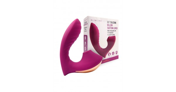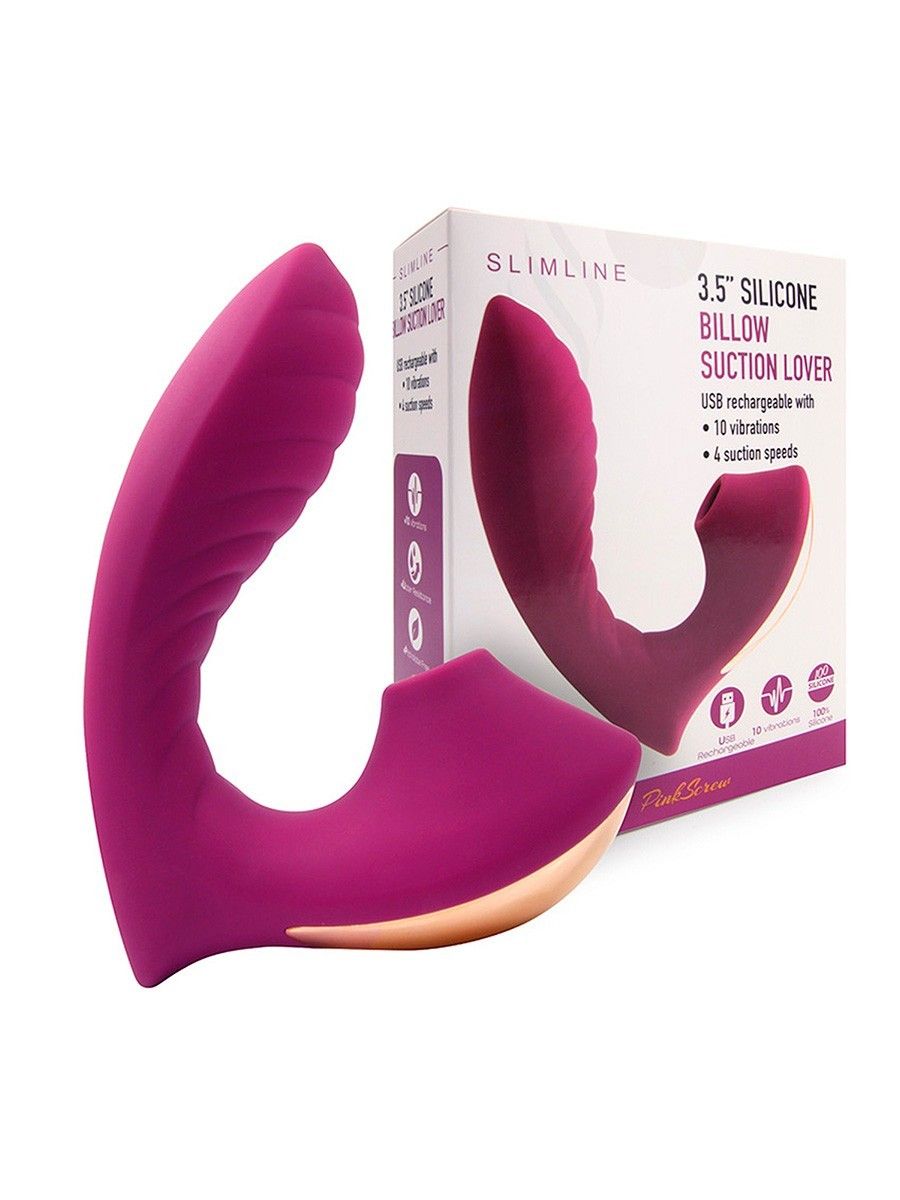 Сливовый L-образный вибромассажёр с вакуумной стимуляцией 3,5’’ Silicone Billow Suction Lover. 10 ре..